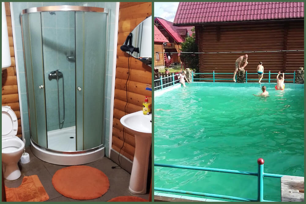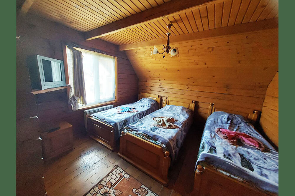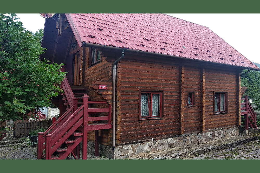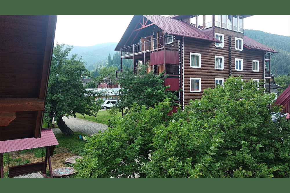 Туристичний відпочинковий комплекс складається з триповерхового дерев’яного корпусу та 8-ми окремих двоповерхових дерев’яних котеджів.
